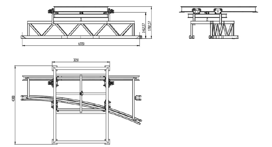 Next, the turntable rotates around its axis until it aligns with the required track direction. After the rotation, the turntable is coupled with the track structure using additional locking elements. Finally, the system confirms route readiness and authorizes the vehicle to proceed.
