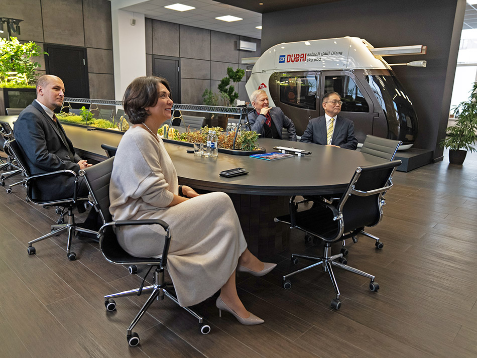 During the meeting, Mrs. Kosareva discussed the company’s ongoing projects and invited Mr. Yamamoto to visit EcoTechnoPark. The ambassador accepted the invitation and took the opportunity to test several models of uPods, assessing the performance of rail unmanned vehicles in practice.