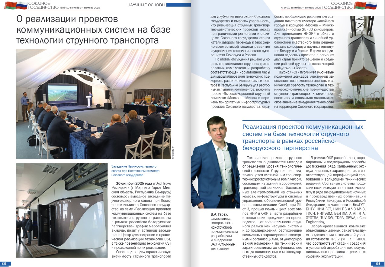 2The “Union State” journal has published an extensive article on string transportation, where leading experts from the company discuss the unique features of the uST technology and several projects underway in Belarus and Russia.
